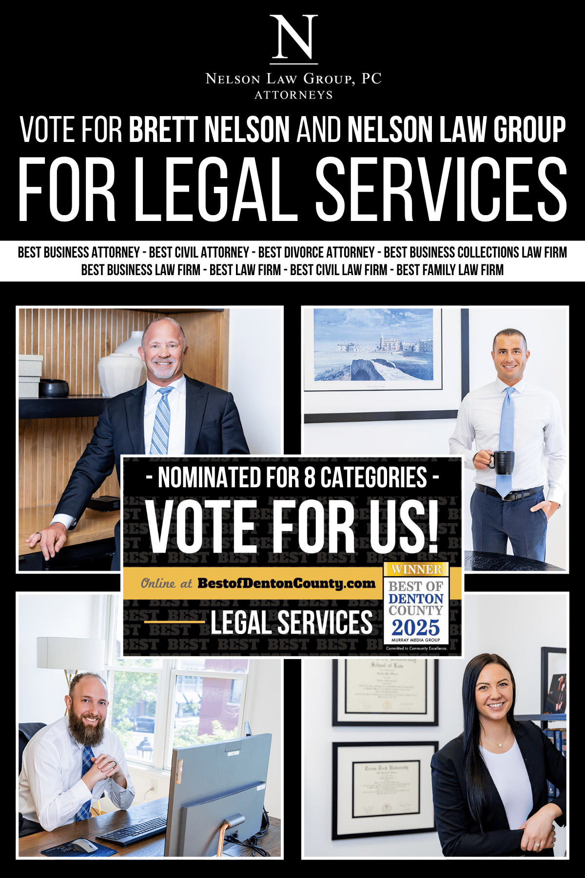 At Nelson Law Group in Flower Mound, our legal and life experiences uniquely qualify us to guide you through perhaps the most difficult times of your life. With this perspective, we can help our clients focus on the issues that will impact their case and not waste time or money on matters that are emotionally driven. We represent people in a variety of legal disputes in the areas of Family Law (Divorce Attorney), Personal Injury, Civil Litigation, and Estate Planning.