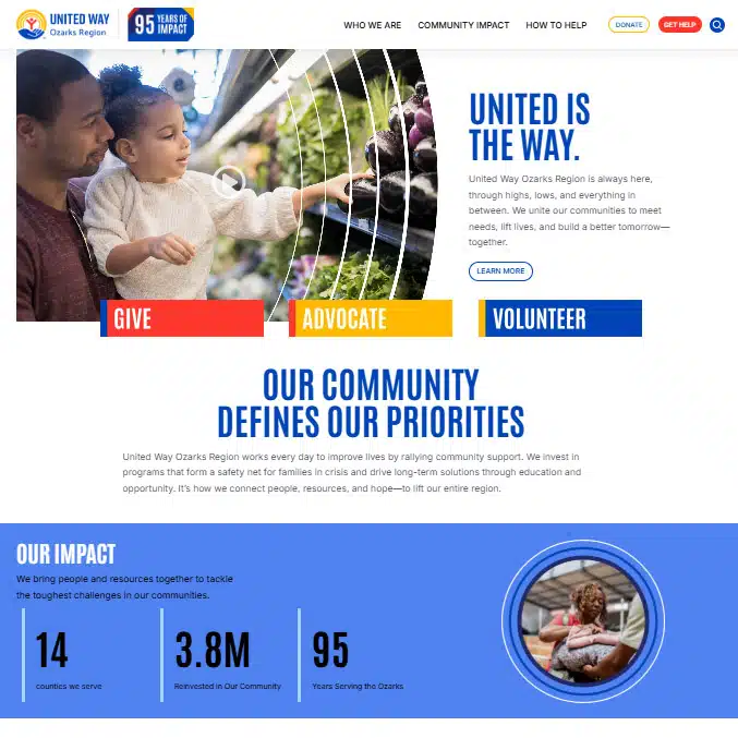 United Way engaged our team for web design and development, web hosting, SEO, content marketing, ongoing website maintenance, and marketing consulting. We delivered a scalable, brand-aligned digital platform that reflects the organization’s refreshed identity, improves user experience, and supports stronger connections with donors, volunteers, and community partners. Not sure what you need to grow your business? Contact us today!